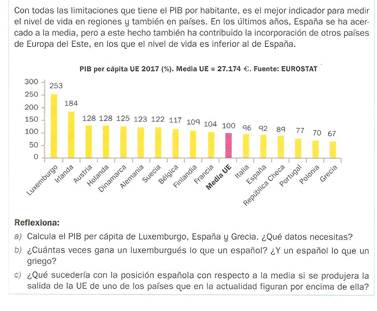 1¿Qué lugar ocupa España respecto a la media de la OCDE en cuanto a PIB per cápita?