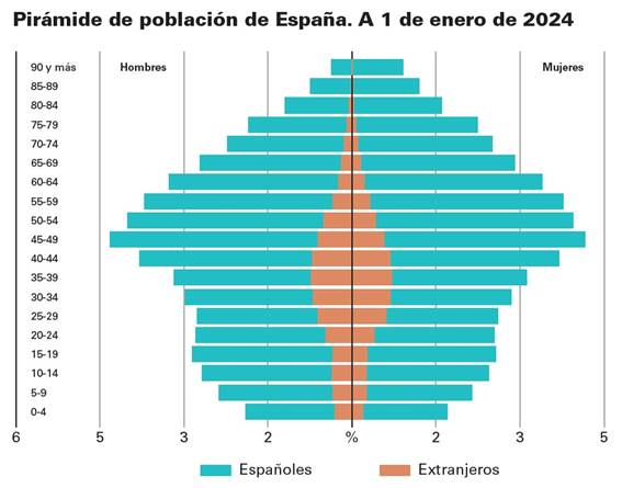 Valora la sostenibilidad de la pirámide de población española.