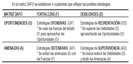 Lo que se pretende con esta matriz no es determinar qué estrategia sería la mejor, sino sólo contemplar y comparar las estrategias viables o, al menos, las más significativas.