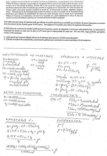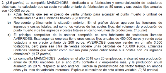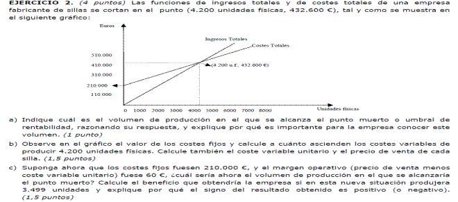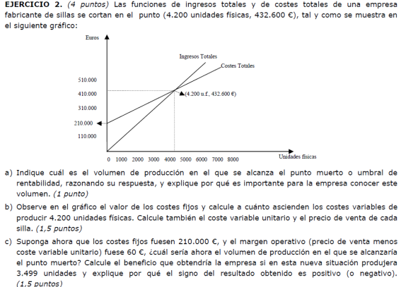 - Si al final del ejercicio ha perdido 4000 euros. ¿Cuántas unidades de producto ha vendido?