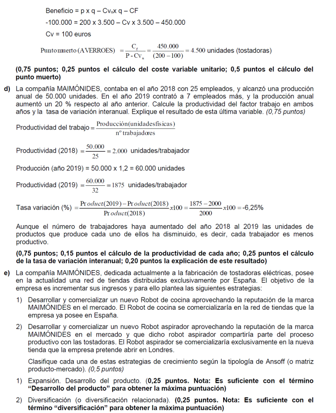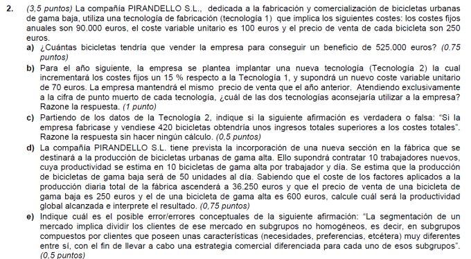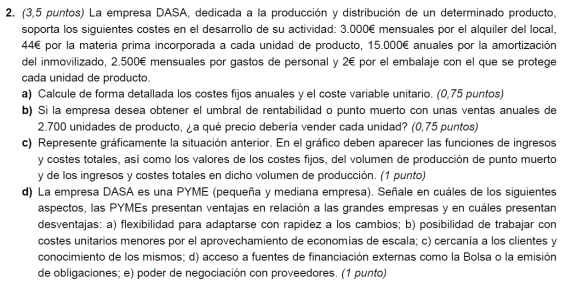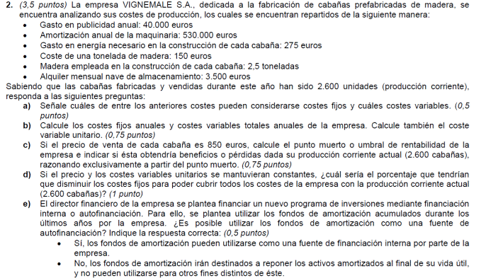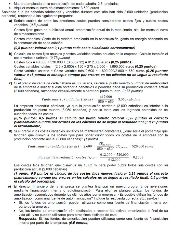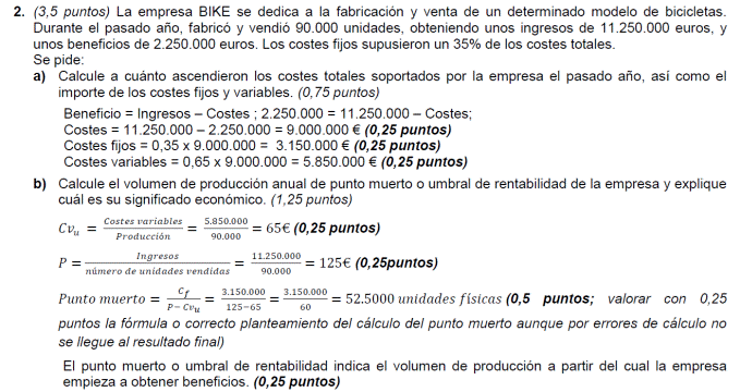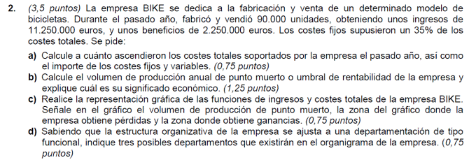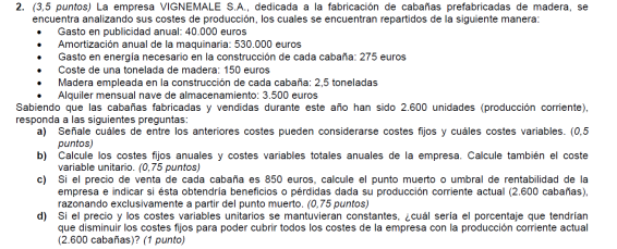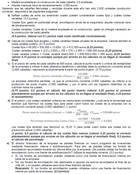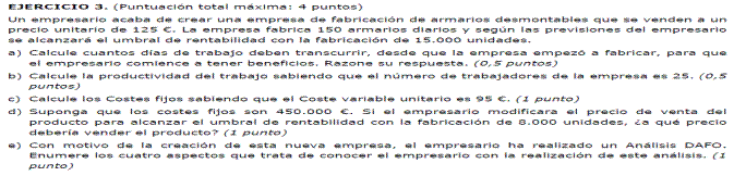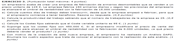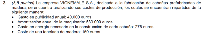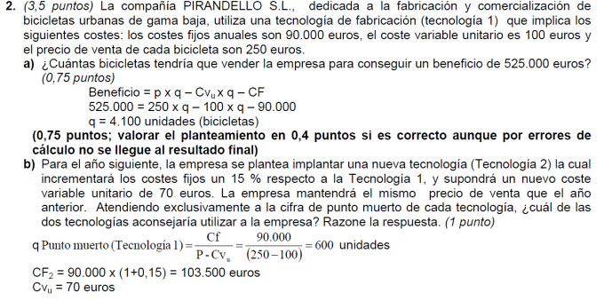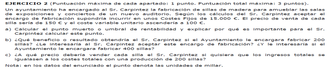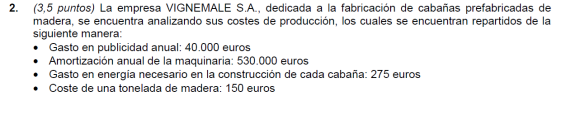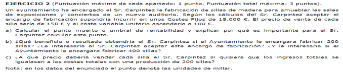 - Coste variable unitario del producto 300 euros