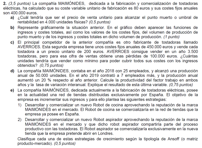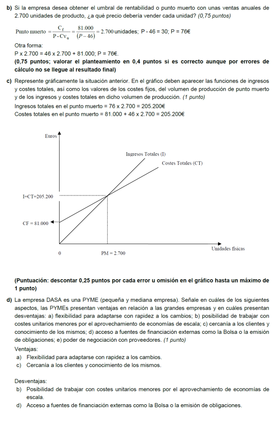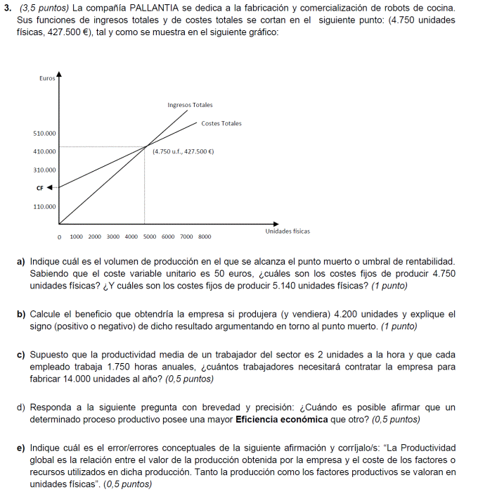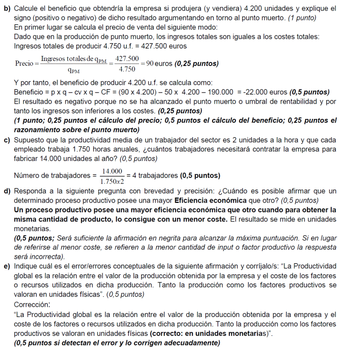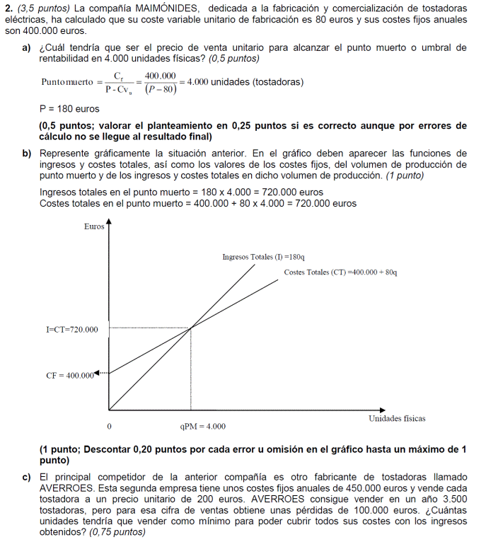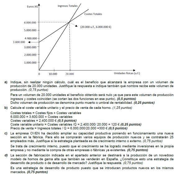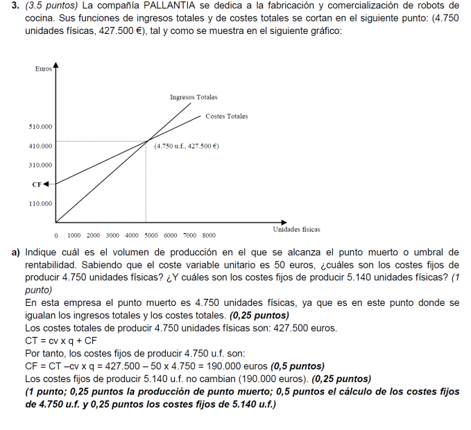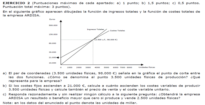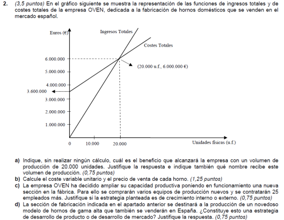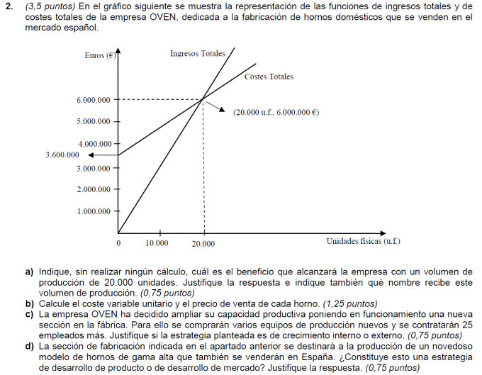 - b) Si al final del ejercicio ha perdido 1.400.000 euros. ¿Cuántos unidades de producto ha vendido? Si al final del ejercicio ha ganado 3.600.000 euros, ¿cuántas unidades de producto ha vendido?