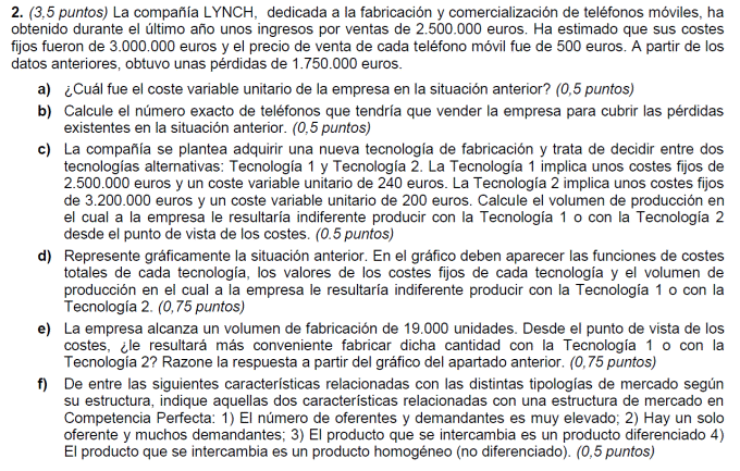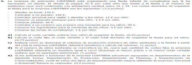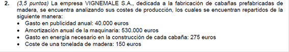 Ej5.- Dada una empresa en la que se han producido 2000 unidades de producto, y además: