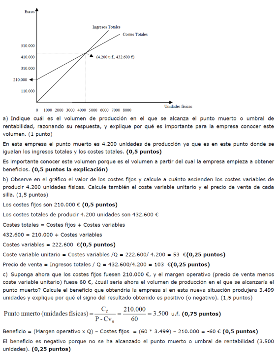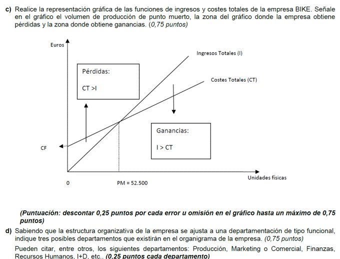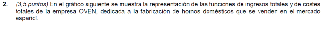 - c) Realizar la representación gráfica de l umbral de rentabilidad señalando la “zona de pérdidas” y la “zona de beneficios”.