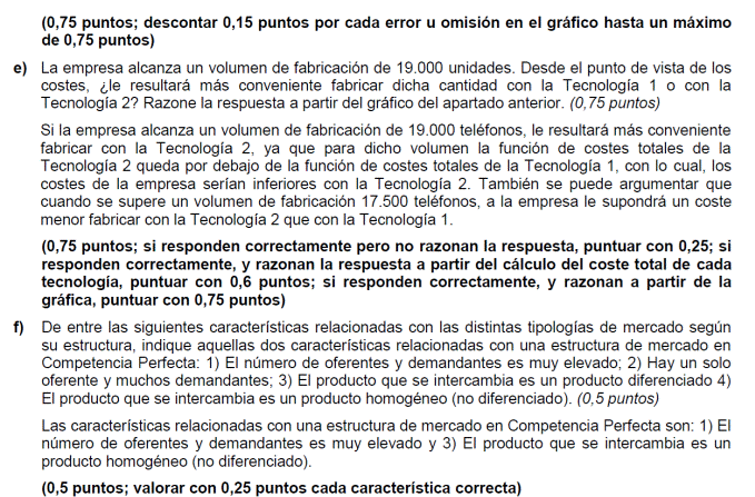 Observa que bajo los supuestos de este apartado, las curvas de costes son rectas. En concreto, la curva de costes fijos es una recta paralela al eje de abscisas, y las curvas de costes variables y costes totales son rectas paralelas: