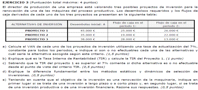 Una empresa tiene que elegir entre los siguientes proyectos. Los datos de que dispones son los siguientes: