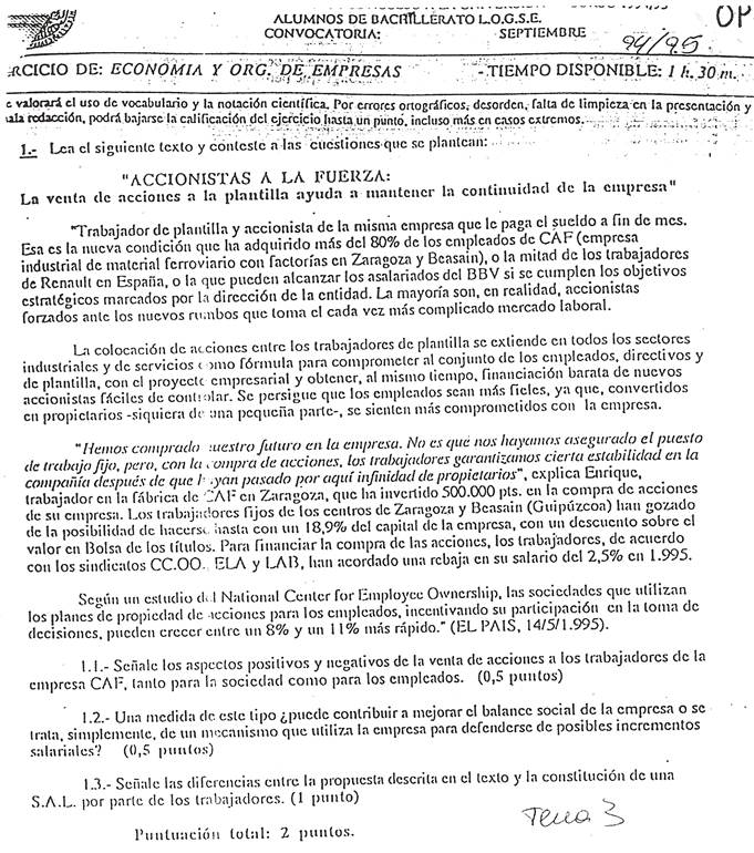 Exámenes selectividad (EBAU) Empresa CASTILLA Y LEÓN (todos resueltos)