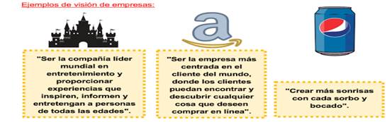 Visión : Define y describe la situación futura que desea tener la empresa, el propósito de la visión es guiar, controlar y alentar a la organización en su conjunto para alcanzar el estado deseable de la organización.