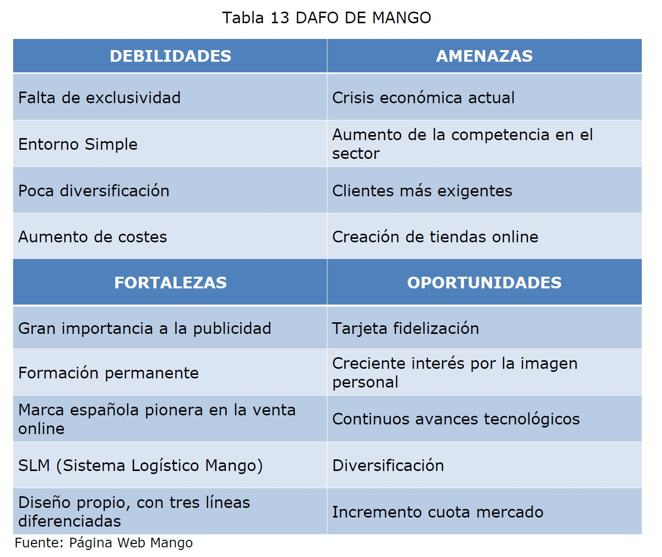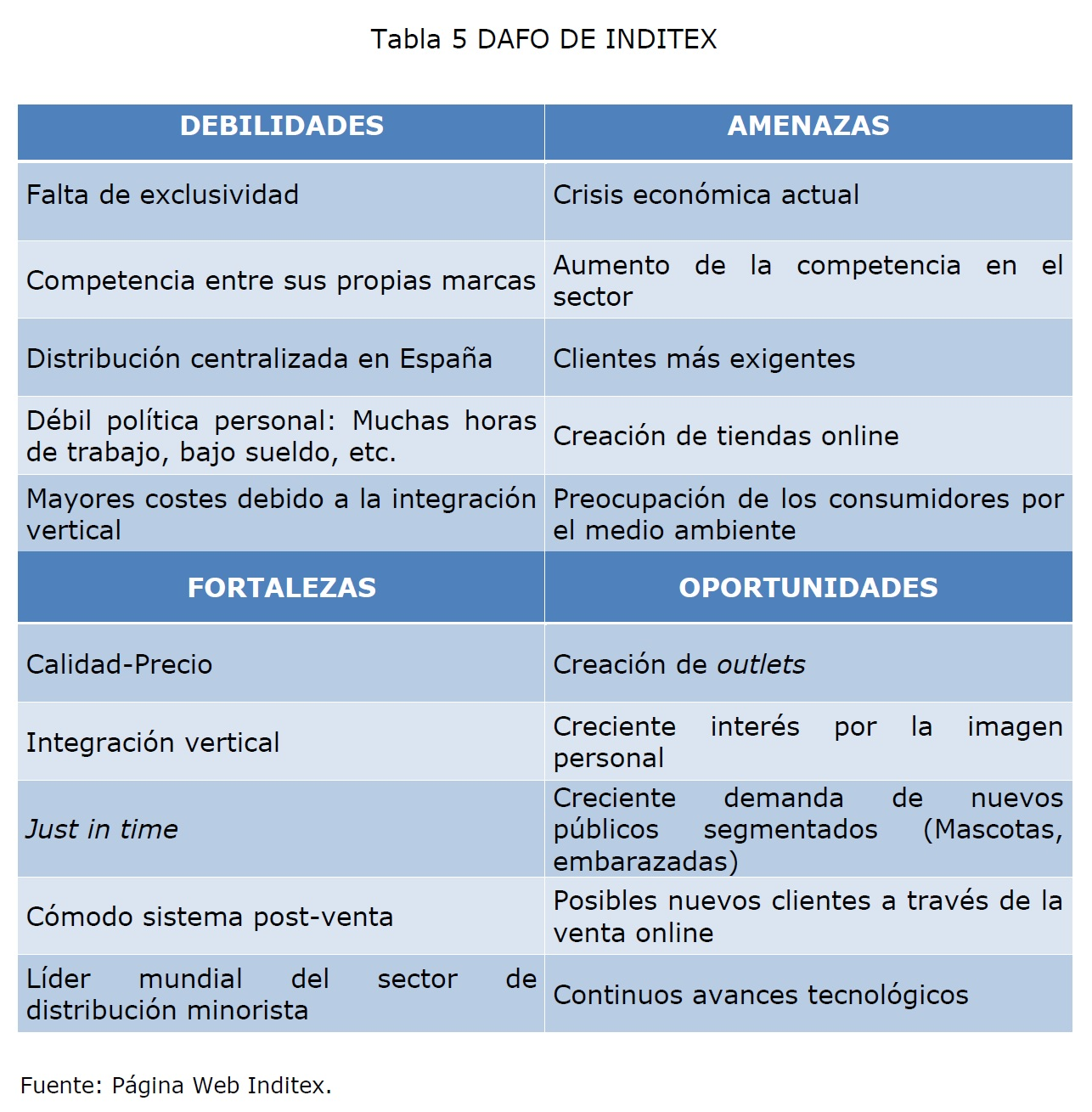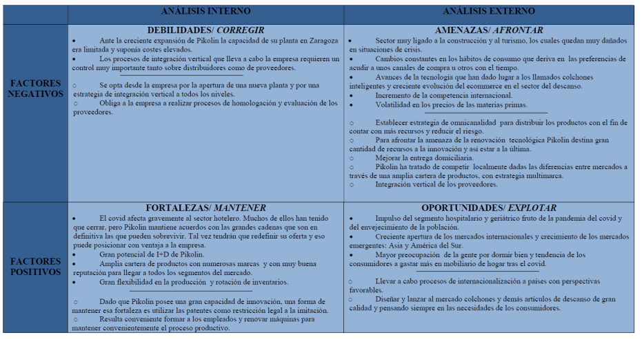 Trata de hacer una REFLEXION previa ante un problema, escribiendo las conclusiones en un formato organizado, normalmente en una cuadrícula, y sin mucho detalle, de forma esquemática. En una tabla resumen se indican los puntos FUERTES y DÉBILES INTERNOS de la empresa (competencia o capacidad para generar y sostener sus ventajas competitivas) además de las AMENAZAS y OPORTUNIDADES EXTERNAS, en coherencia con la lógica de que la estrategia debe lograr un adecuado ajuste entre sus capacidad interna y su posición competitiva externa.