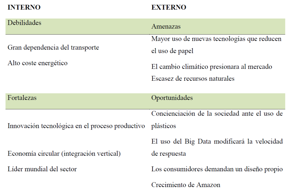 - El alto coste energético que soporta en España supone una debilidad que le ha hecho plantearse su deslocalización hacia otros países con menor coste energético.