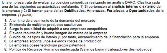 Hay que hacer el DAFO, extraído del examen PAU de Cataluña de junio de 2021
