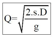 multiplicar el coste de hacer un pedido (s) por el número de pedidos realizados en total (N), donde N es el cociente entre la demanda (D) y el tamaño del pedido (Q):