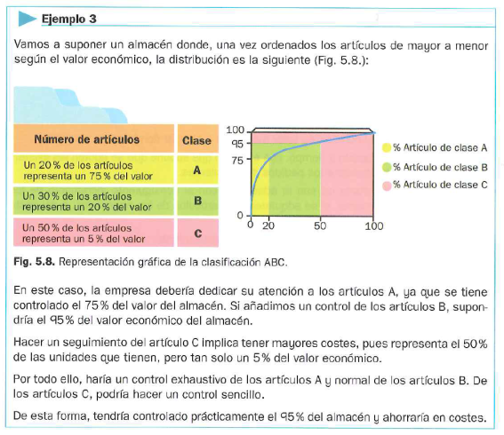Existencias C: existencias con muy poca relevancia para la gestión de inventarios, por lo que no se controlan especificamente. Se usan métodos simplificados y aproximados. Representan en torno al 50% de las existencias, pero tan solo el 5-10% del valor total del almacén.