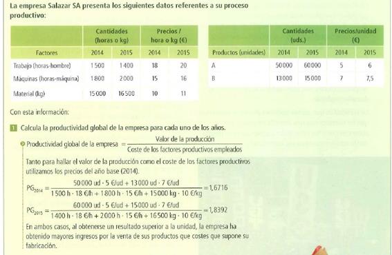 EJEMPLO 2 Determina la productividad global de la empresa en los años posteriores :