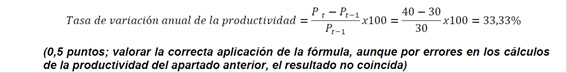 Por tanto, la productividad ha aumentado un 2,9%. ( 0,5 puntos )