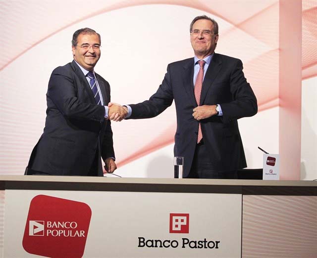 En el año 2012, un Popular que a pesar de ser un gigante bancario (la sexta entidad española) no estaba atravesando por su mejor momento en medio de un fuerte proceso de ajustes y limpieza de su balance, anuncia la compra del banco Pastor mediante una operación de fusión por absorción (pago en acciones).