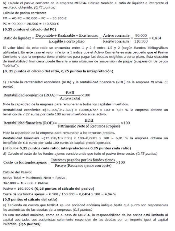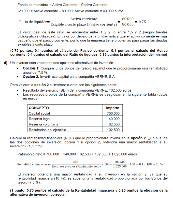 d) Realizar el análisis económico y financiero utilizando los ratios que conozcas e indicando en su caso alguna propuesta de mejora.