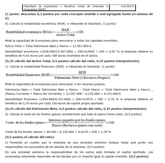RE La rentabilidad económica relaciona el beneficio bruto (antes de intereses e impuestos) y la totalidad de recursos utilizados |