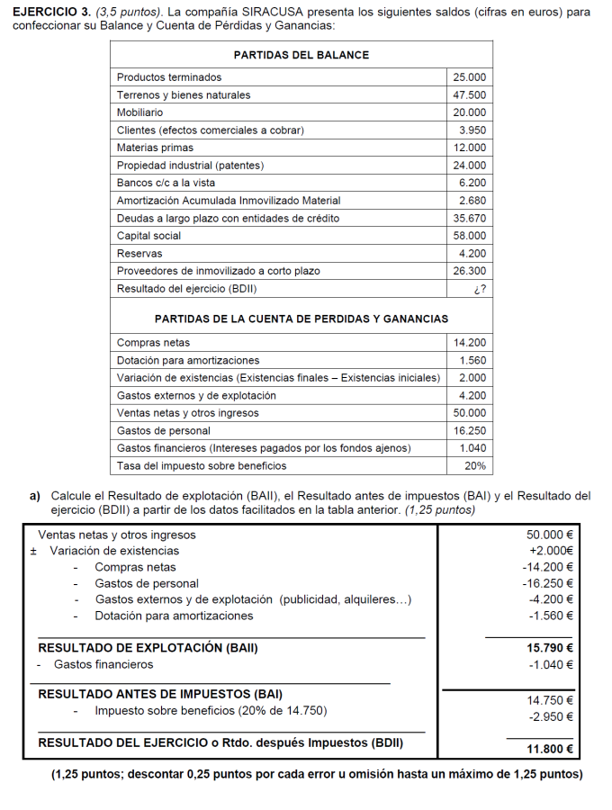 AE8 //27.- Sean los siguientes datos correspondientes al Balance y cuenta de Pérdidas y ganancias de una empresa. (cifras en euros)