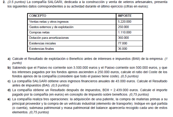 AE12 // El capital social de la empresa NOJA, fabricante de mobiliario de jardín, es de 12 millones de euros. La empresa no tiene deuda y en el último ejercicio económico ha conseguido un beneficio neto de 2,5 millones.