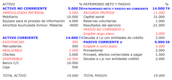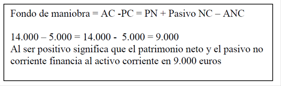 c) Calcular el fondo de maniobra y representar gráficamente la situación de equilibrio patrimonial.