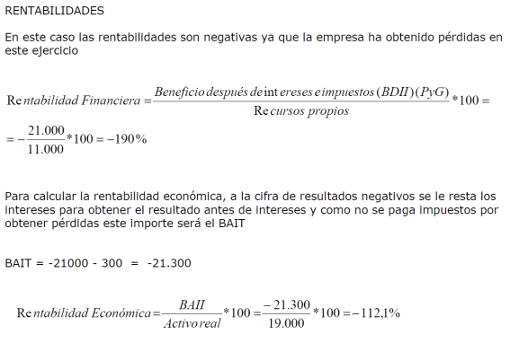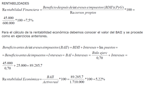 19.75% A pesar de tener gastos financieros positivos, a diferencia de la empresa de vídeo, obtiene un mayor beneficio después de impuestos respecto a los fondos propios utilizados. La rentabilidad financiera obtenida por la empresa (RE=18.75%) es muy superior a la obtenida por la que obtendrían los accionistas invirtiendo en activos financieros sin riesgo actualmente entre un 2%-4%. |