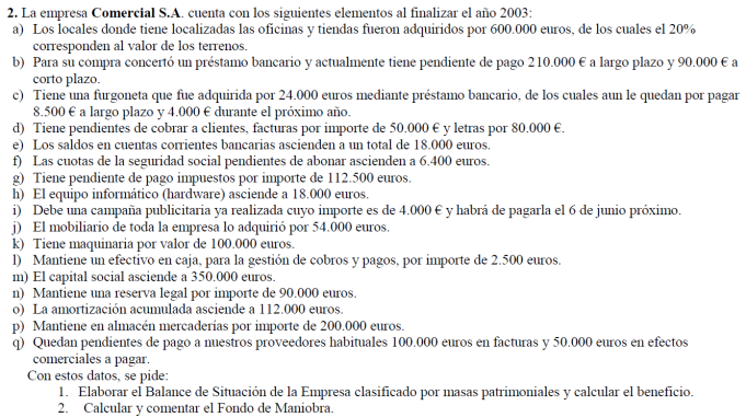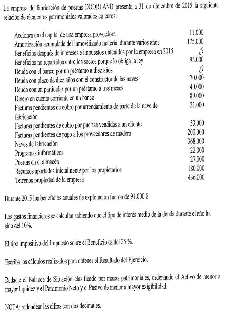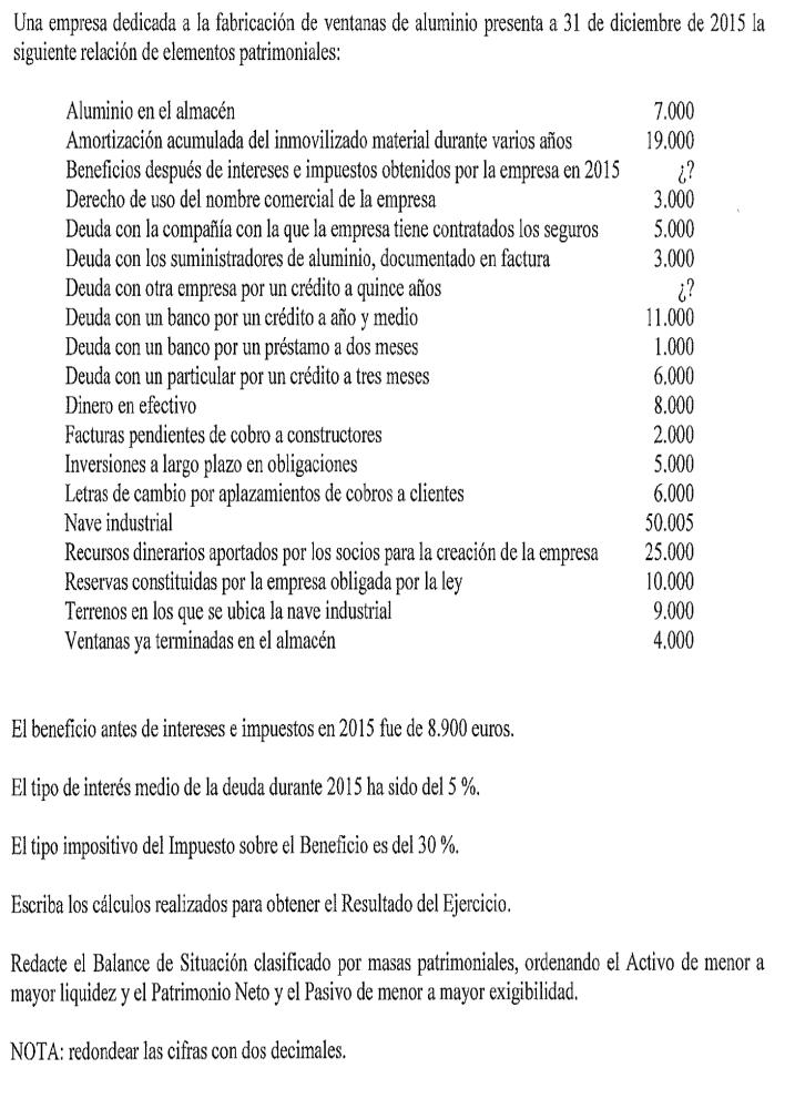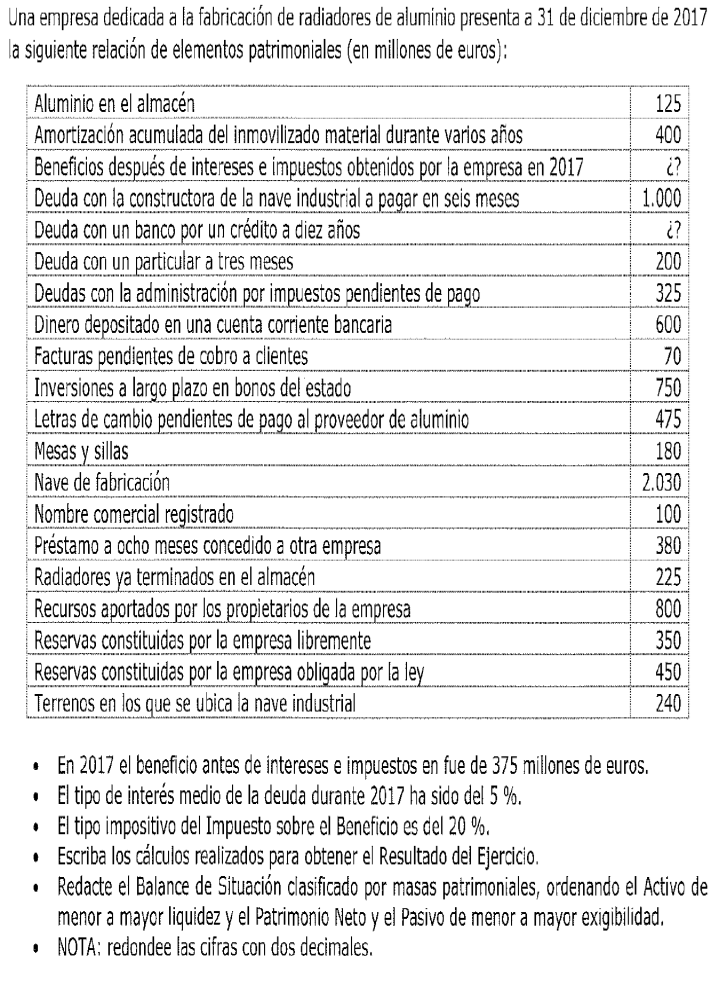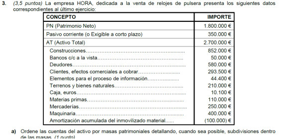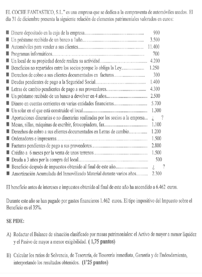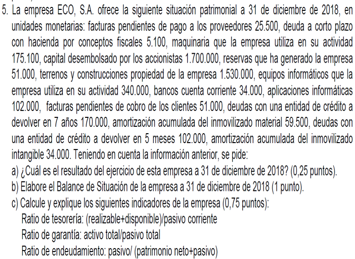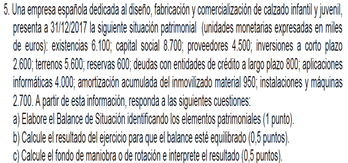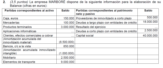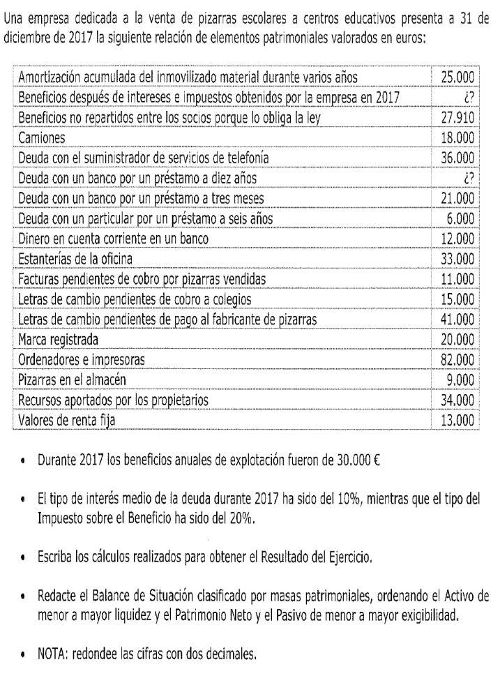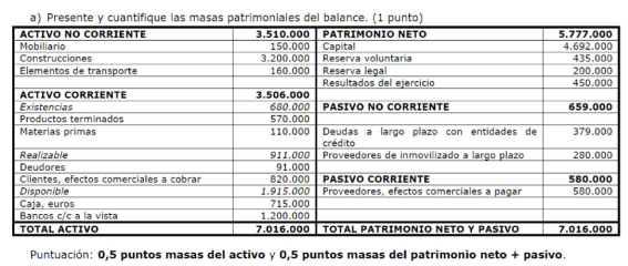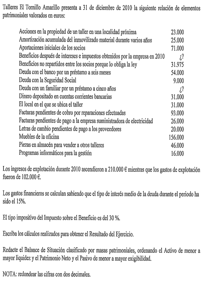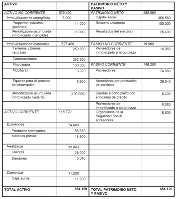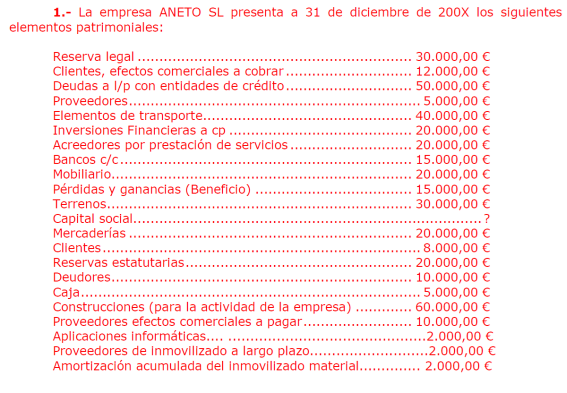 Una empresa tiene los siguientes elementos patrimoniales valorados en euros: