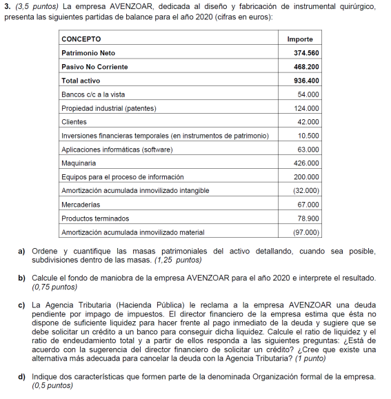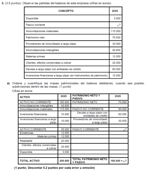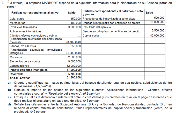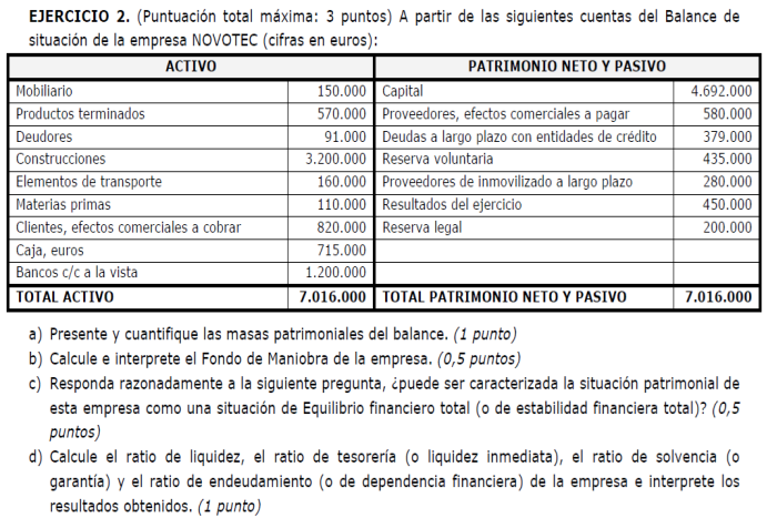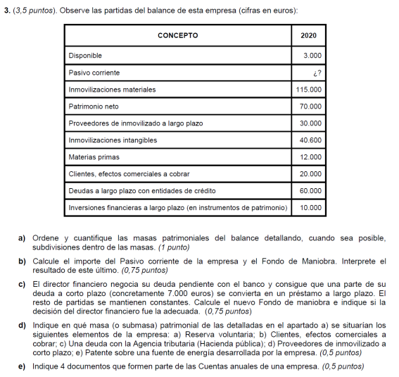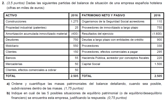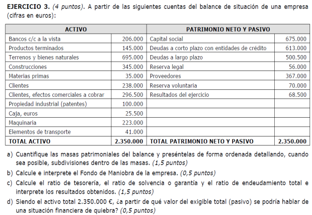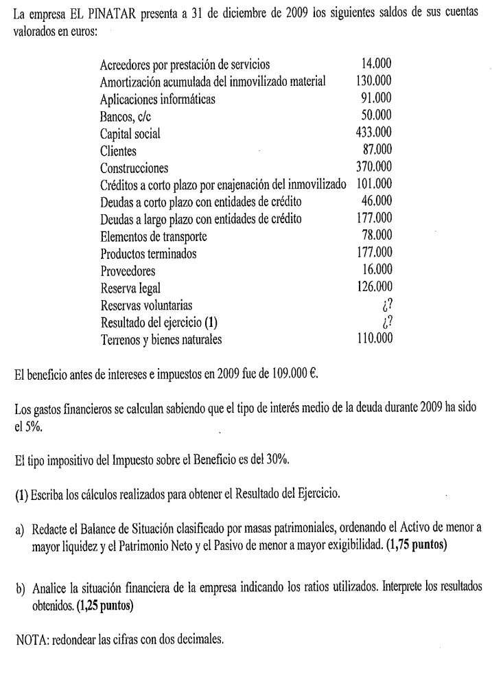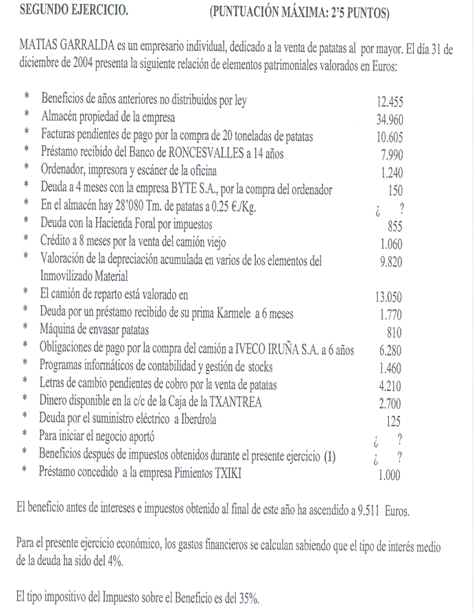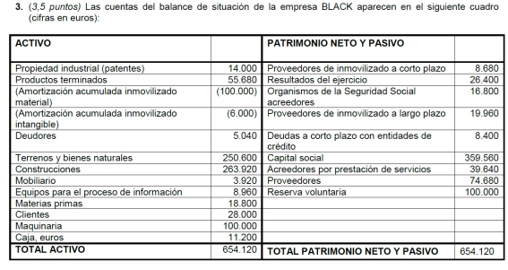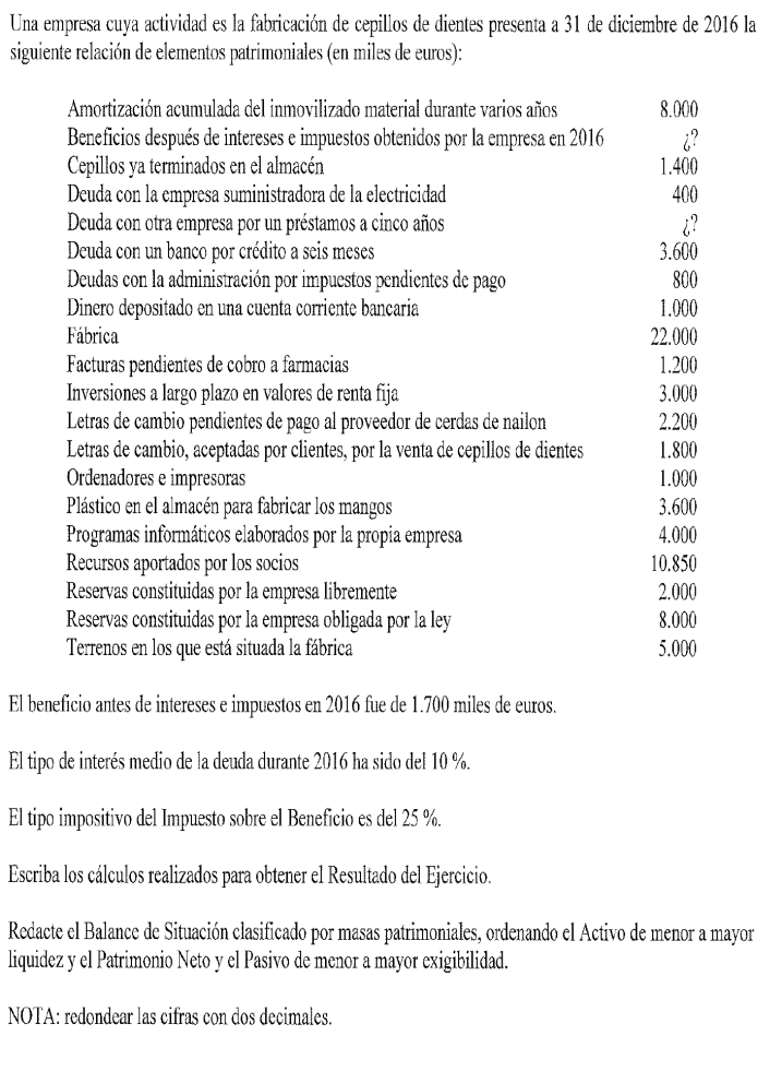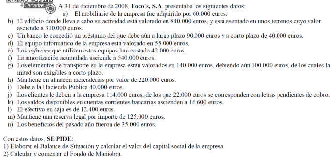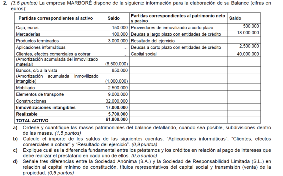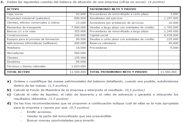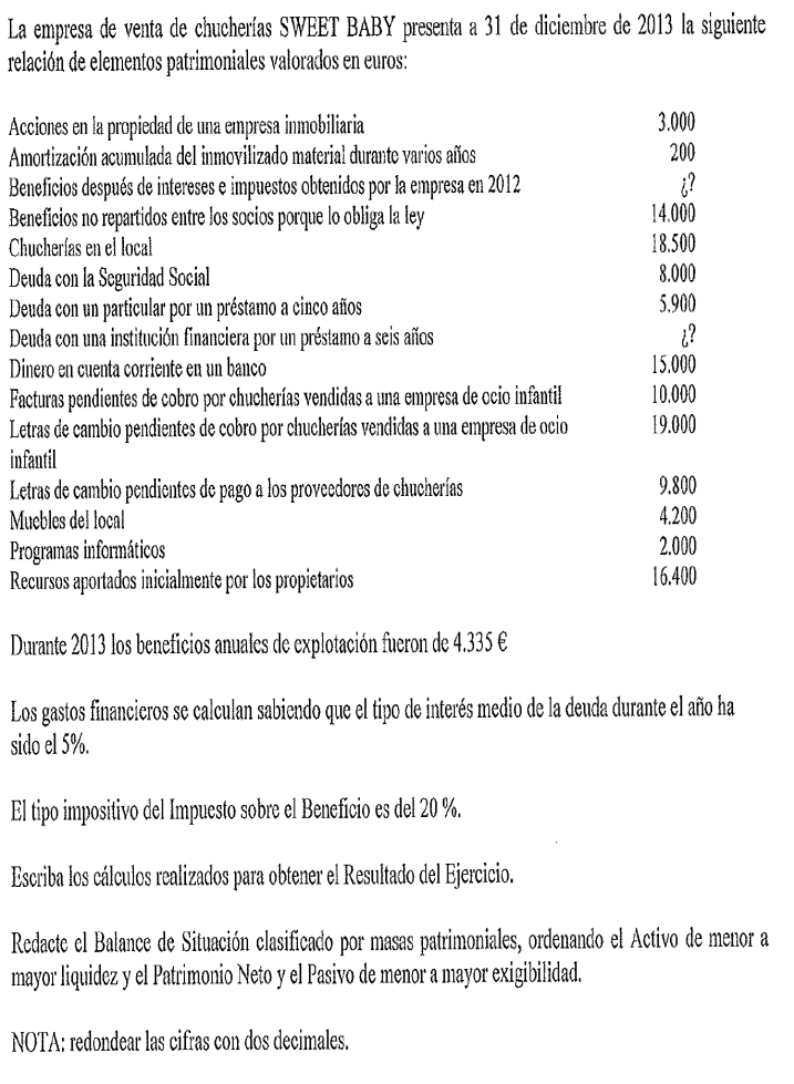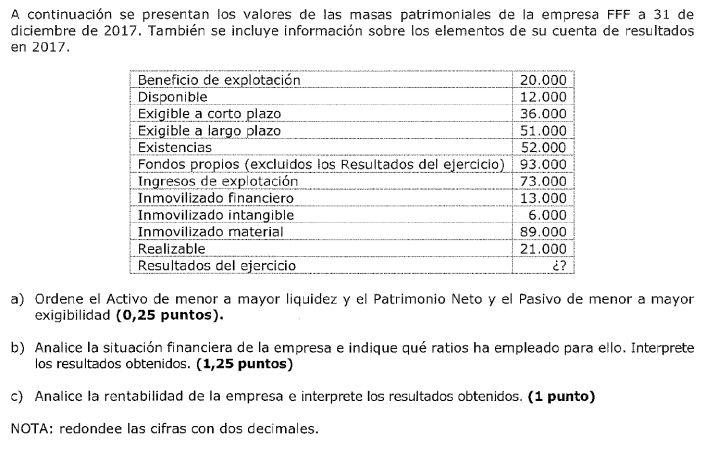 Una empresa tiene los siguientes elementos patrimoniales valorados en euros: