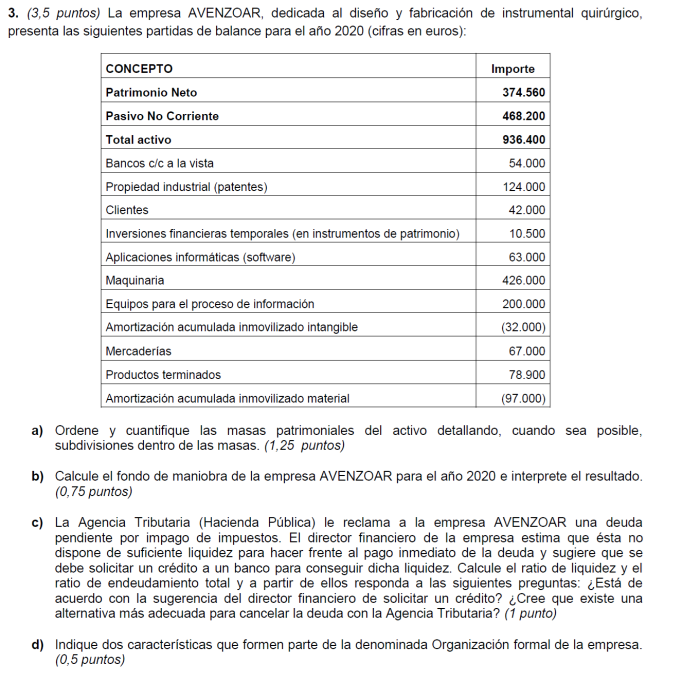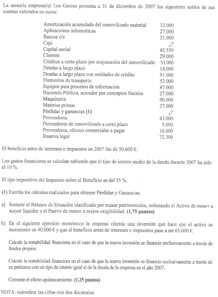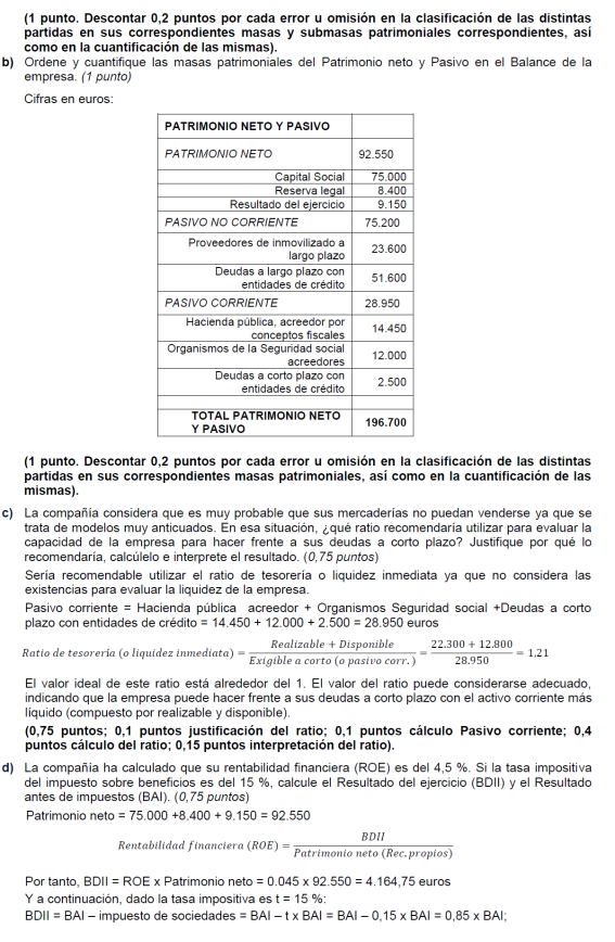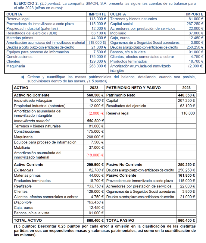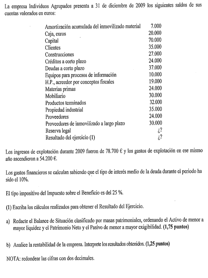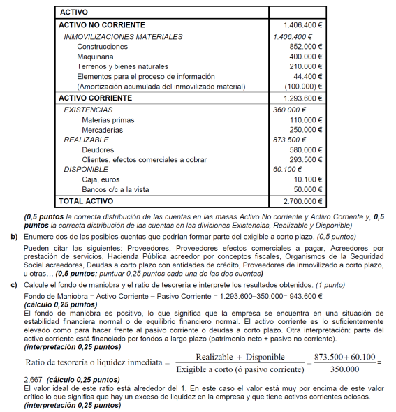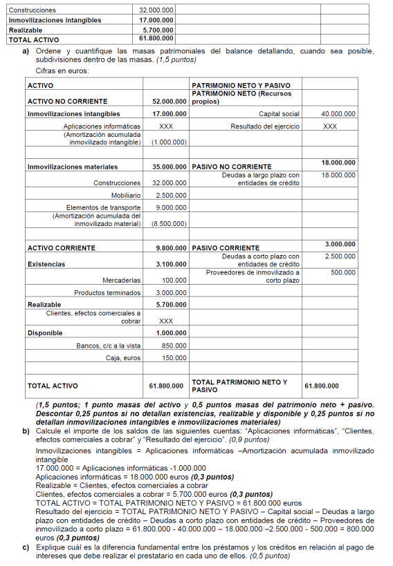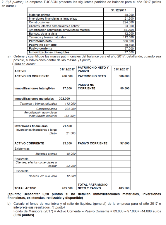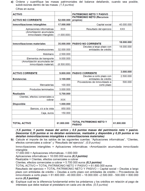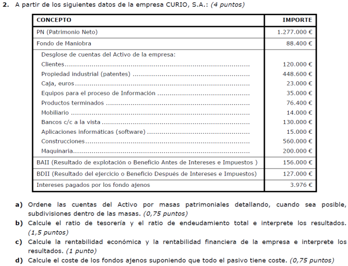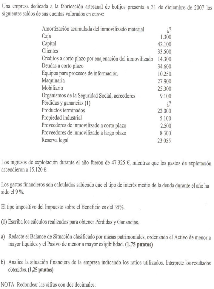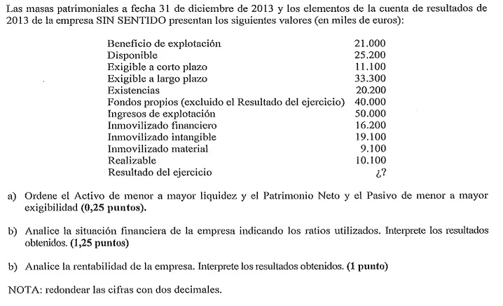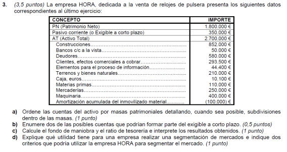 Una empresa tiene los siguientes elementos patrimoniales valorados en euros: