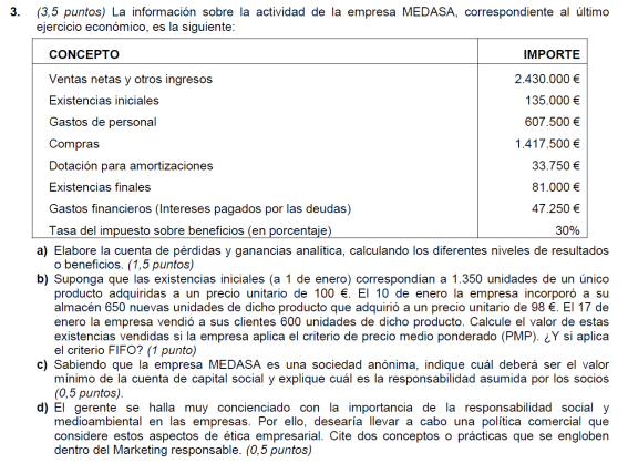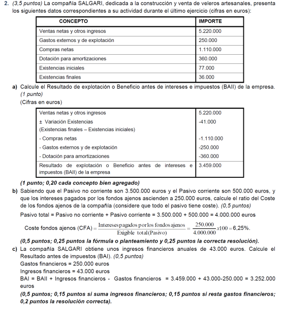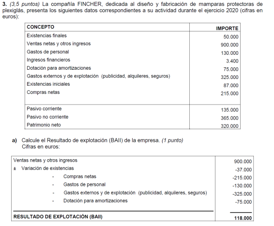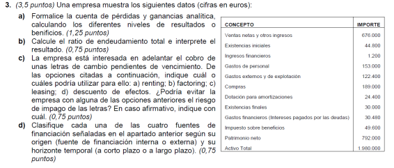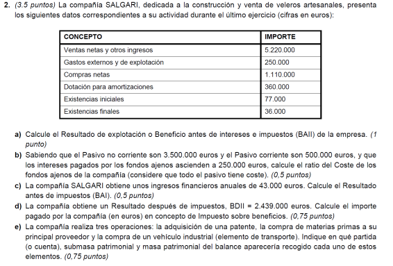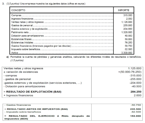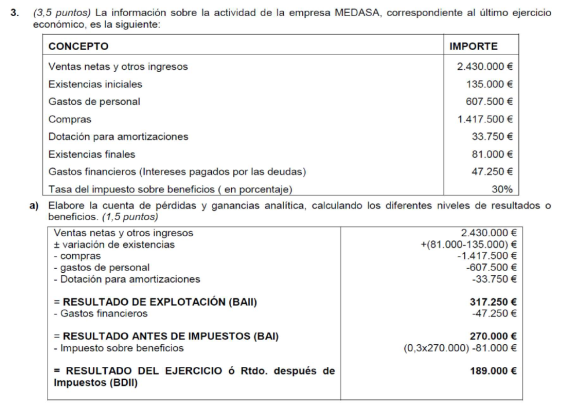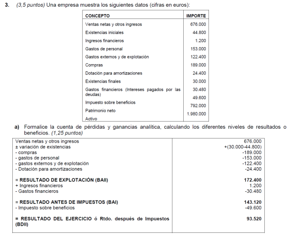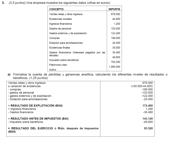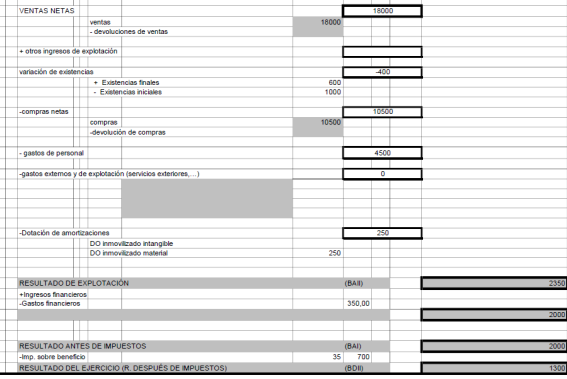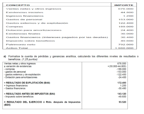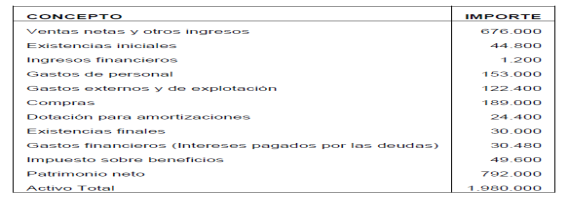 Elabora la cuenta de resultados y realiza el análisis económico sabiendo que el valor del activo de la empresa es de 22.000 € y sus fondos propios de 16.000 €.