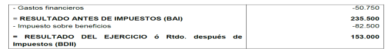Impuesto sobre beneficios 30%.