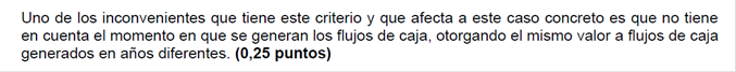 a) Utiliza el método de Plazo e Recuperación o PayBack