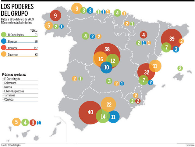(1) por un lado la apertura de más centros (tanto grandes almacenes como hipermercados) en las principales ciudades de España,