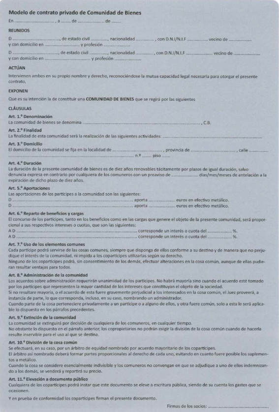 Así es el contrato para formalizar la Comunidad de Bienes