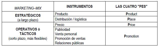 Su combinación concreta es fruto de la estrategia de cada empresa para alcanzar sus objetivos y se denomina “marketing–mix”. Sin embargo, las modificaciones son posibles dentro de unos límites, especialmente en el caso de las variables estratégicas, que han de ser cuidadosamente planificadas. Si los precios están regulados de alguna manera, no podrán alterarse con absoluta libertad. Las variaciones en las características de los productos (calidad, tamaño, prestaciones, color) suelen ser costosas y requieren tiempo. El sistema de distribución utilizado puede ser prácticamente imposible de cambiar. Por último, los métodos de promoción (medios de comunicación, mensaje difundido, imagen y otros) llegan a identificar a la empresa por lo que cambiarlos resulta a veces difícil. Aún con estas limitaciones, sobre estos cuatro instrumentos se apoya toda acción de marketing.