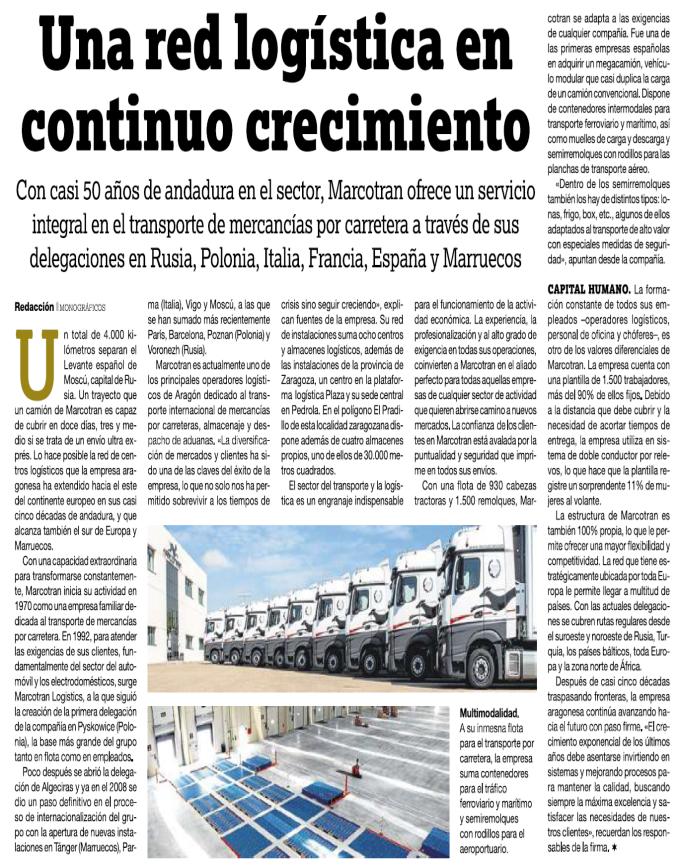 Protestas del sector del transporte en Zaragoza: los camiones protestan en las calles por décimo díaDe esta manera, no cuenta con el respaldo de Federación de Empresas de Transporte (FET) de Aragón, que agrupa a las asociaciones provinciales de Zaragoza (Fetraz), Huesca y Teruel, que representa a un millar de pequeñas, medianas y grandes empresas con una flota cercana a los 5.000 vehículos y una plantilla de 7.000 trabajadores. Entre las compañías integradas en esta patronal se encuentra Sesé, Carreras y Marcotran, los tres grandes operadores de la comunidad, que lo son también a nivel nacional.