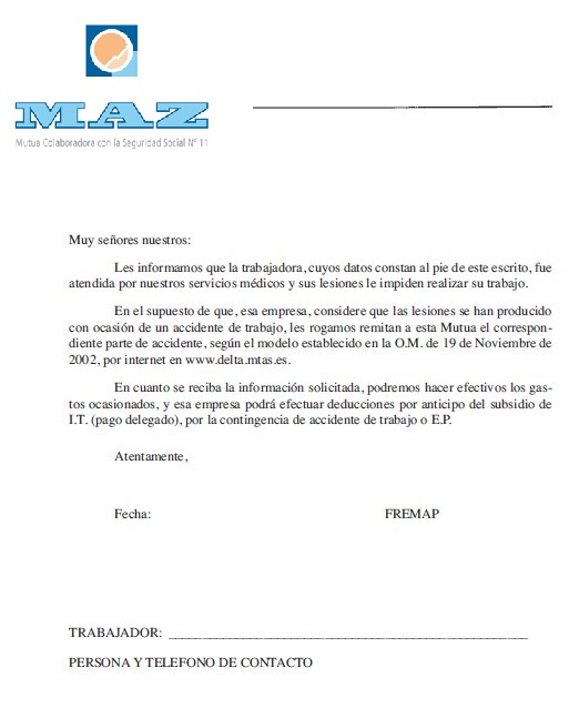 Se recibe la siguiente comunicación de la mutua de accidentes: