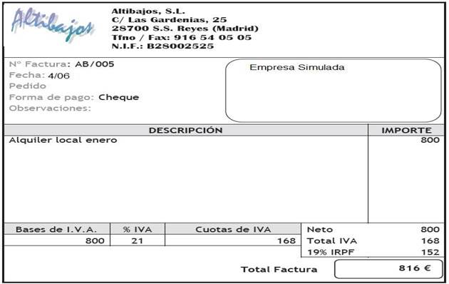 Alquiler del local correspondiente al mes