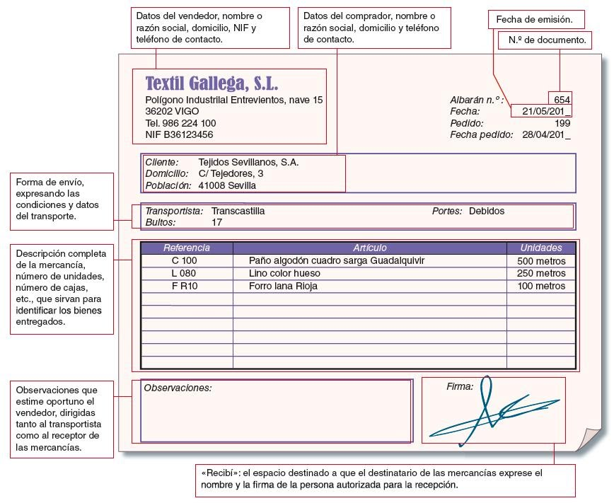 El albarán debe contener: