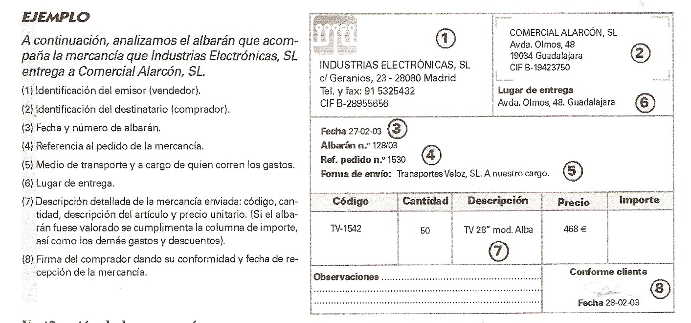En este momento aparece un segundo documento, el albarán o nota de entrega, que es el documento que acompaña a los artículos cuando se entregan.