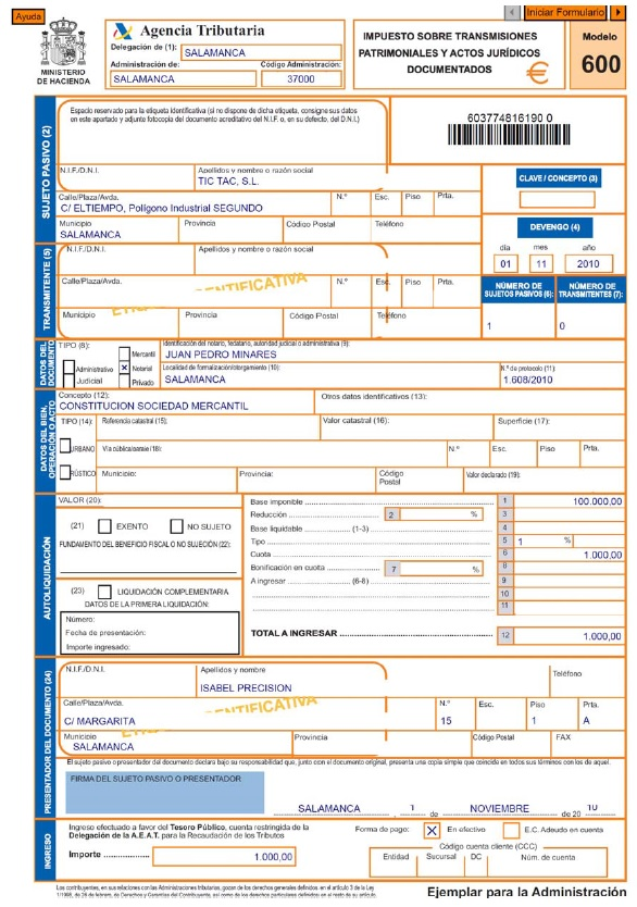 IMPUESTO SOBRE ACTOS JURÍDICOS DOCUMENTADOS MODELO 600