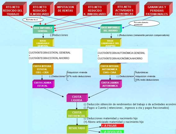 Si tuviéramos más fuentes de renta, sumaríamos todos los ingresos que son suceptibles de tributación en el impuesto, le restaríamos los gastos deducibles que cada ingreso tuviera y obtendríamos una base imponible para cada cada individuo a la hora de realizar su propia declaración de la renta.