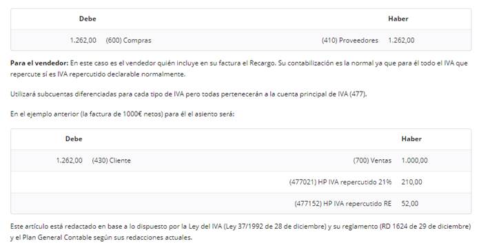 Contabilización del recargo de equivalencia