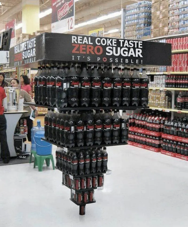 Para ello, montaron una exposición en forma de pirámide invertida donde una sola lata podía sostener más de 50 botellas de Coca Cola, algo que parecía imposible pero no lo era.