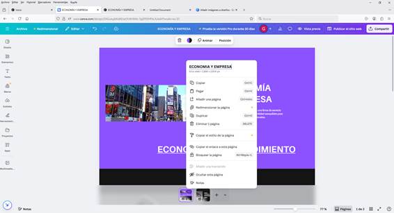 CAMBIAR EL TÍTULO DE PÁGINA 1 A ECONOMÍA Y EMPRENDIMIENTO