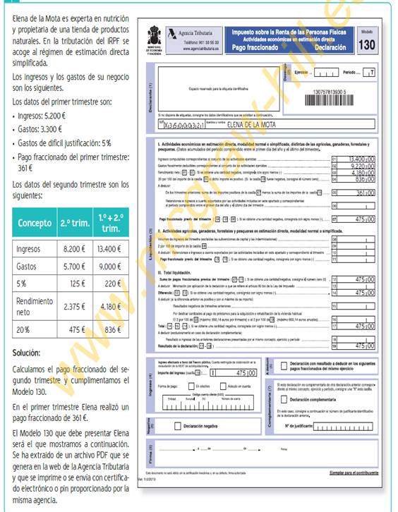 - Modelo 130. Pago fraccionado. Empresarios y profesionales en Estimación Directa.Declaración – Liquidación.