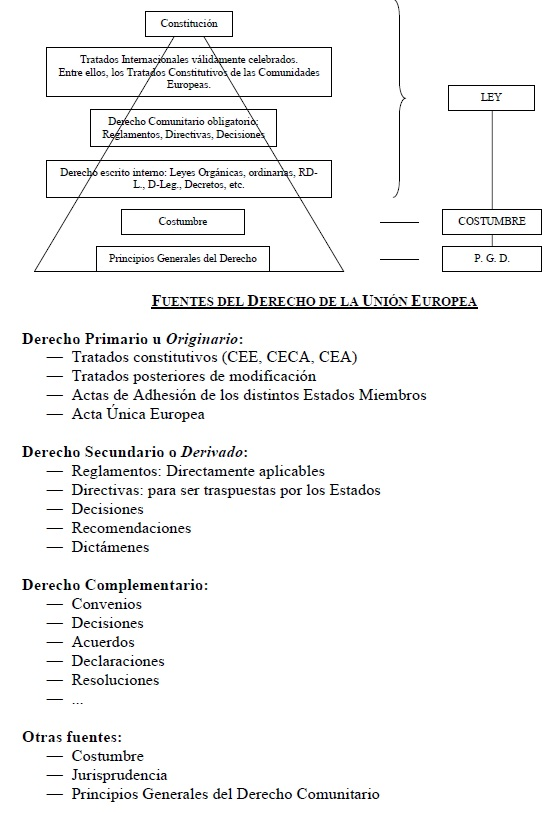 Derecho administrativo y Derecho privado. Gobierno y Administración. Bases constitucionales del Derecho administrativo. Las Administraciones públicas: concepto y características. El sector público. Fuentes del Ordenamiento jurídico-administrativo. En especial, el reglamento. Fuentes del Derecho de la Unión Europea: Reglamentos, directivas, decisiones y recomendaciones: definición y caracteres. Relaciones internormativas. En especial, los principios de jerarquía, competencia, función, prevalencia y supletoriedad. Los principios de primacía y efecto directo. Otras fuentes: la jurisprudencia, la costumbre, los principios generales del Derecho, el precedente administrativo.