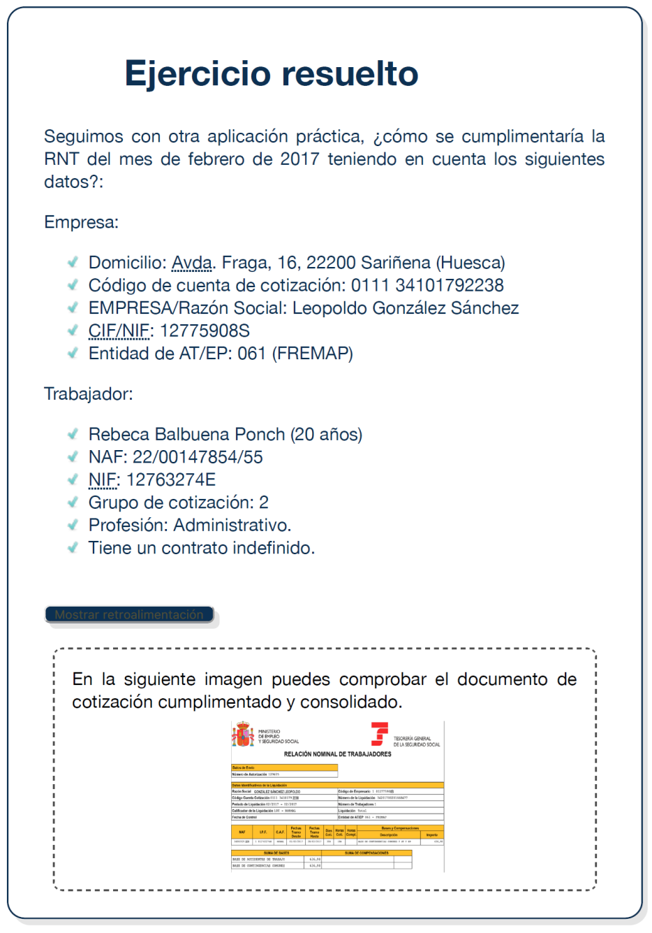 Como se puede apreciar de la lectura de la imagen, se identifica a los trabajadores y al periodo de tiempo al que refiere la cotización. En este supuesto solo hay un trabajador, con una base de cotización por contingencias comunes y profesionales de 546,14 €.