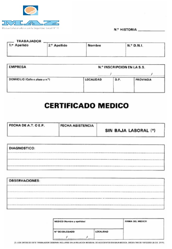 Cuando el trabajador no pueda continuar con su actividad laboral, MAZ emitirá un parte médico de baja por duplicado, uno para la empresa y otro para el trabajador.