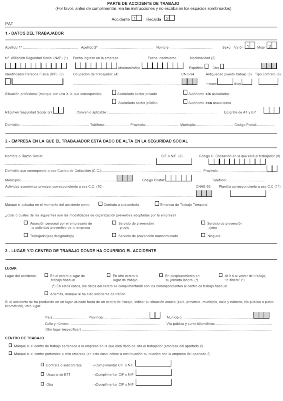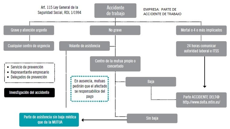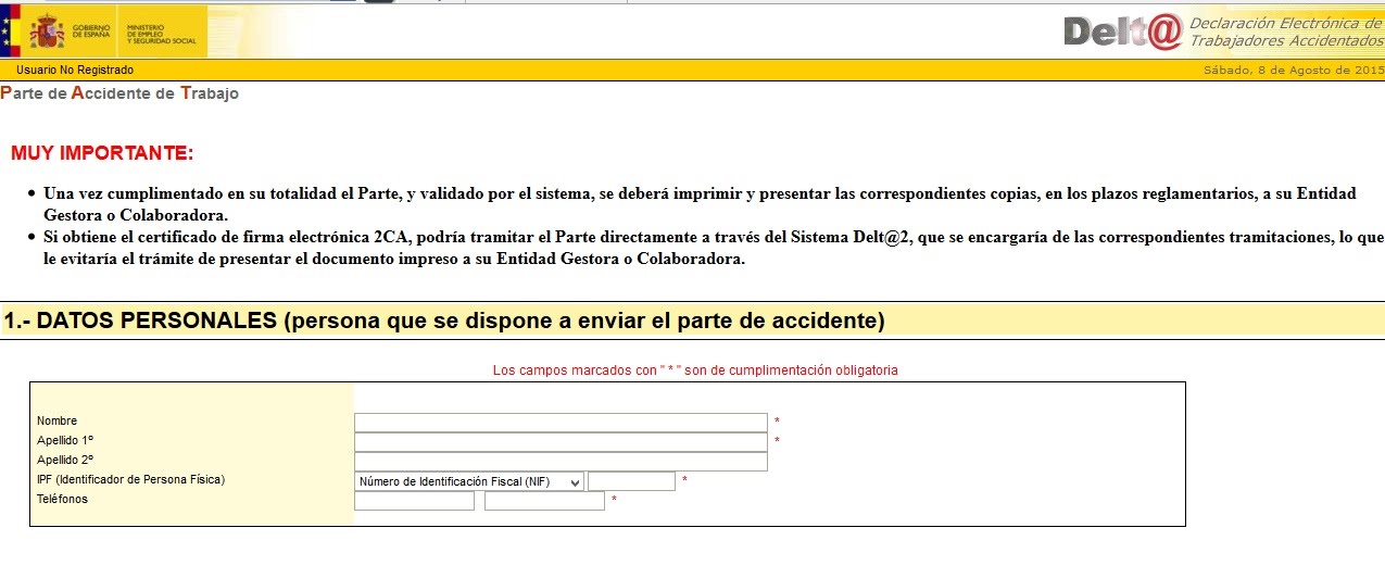 La Orden TAS/2926/2002, de 19 de noviembre establece los modelos para la notificación de los accidentes de trabajo. A partir del 1 de enero de 2004, esta notificación sólo es posible por vía electrónica a través del Sistema de Declaración Electrónica de Accidentes de Trabajo, más conocido como Delt@, accesible desde la web del Ministerio de Empleo y Seguridad Social.